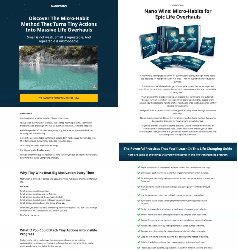 Nano Wins PLR is a done-for-you self-improvement digital product that teaches the power of micro habits.